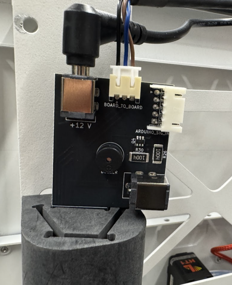 - 12V_IN_MOTOR এবং 12V_IN_LIGHT পোর্টে দুটি পাওয়ার সাপ্লাইয়ের ব্যারেল প্লাগ।