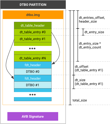 for example, the dtb and dtbo partition, use the following table structure