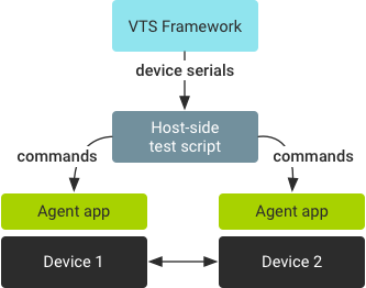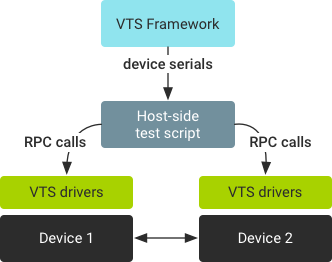 VTS поддерживает тесты, требующие взаимодействия между несколькими устройствами Android.