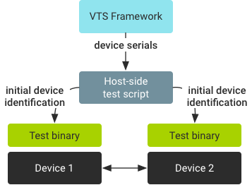 El VTS admite pruebas que requieren interacción entre varios dispositivos Android.