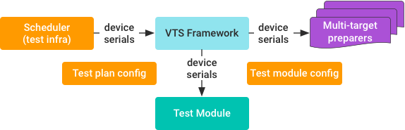 El VTS usa el framework de Tradefed para obtener y pasar números de serie de dispositivos a los módulos de prueba.