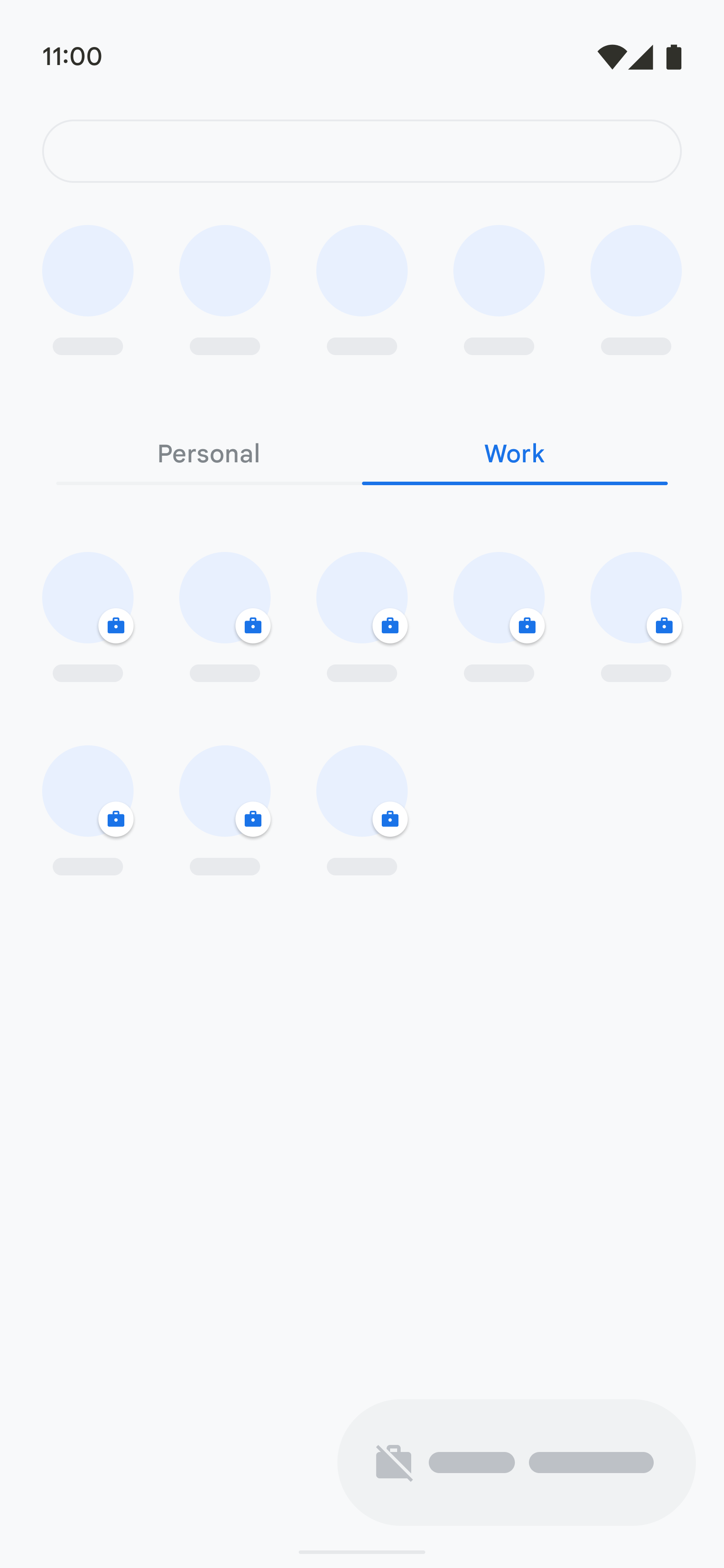 5. Apri Avvio app o il riquadro delle app e verifica che sia presente la scheda Lavoro e che contenga un piè di pagina del profilo di lavoro. Le implementazioni alternative del produttore del dispositivo possono contenere una cartella di lavoro anziché una scheda di lavoro.