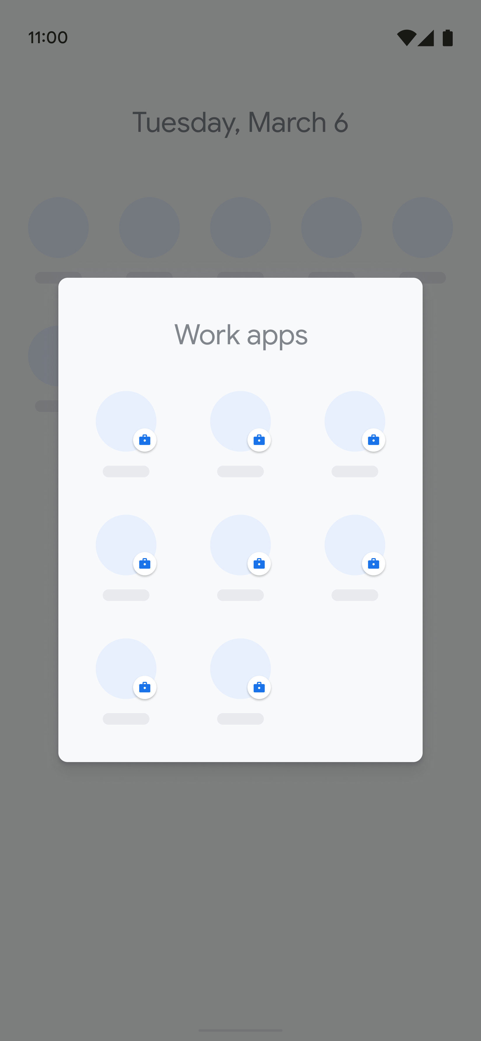 Per i launcher senza un riquadro delle app, in cui una cartella di lavoro contiene app di lavoro, il messaggio informativo sul profilo di lavoro potrebbe essere visualizzato sotto forma di descrizione comando chiudibile quando l'utente apre la cartella di lavoro per la prima volta: