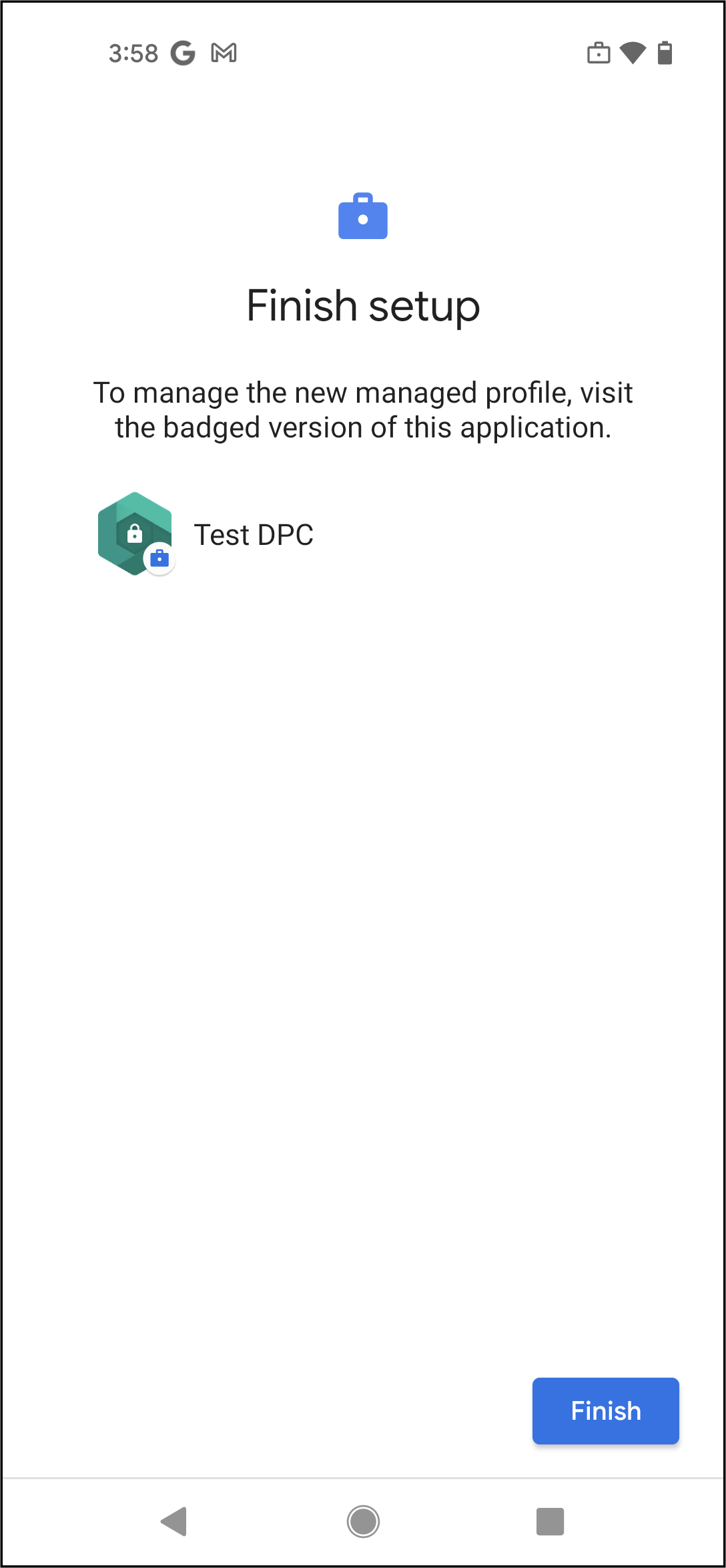 İş profili kullanıcı deneyimini test etmenin en basit yolu, Test DPC uygulamasını kullanarak bir iş profili oluşturmaktır. Aşağıdaki adımlarda, kişisel bir cihazda (KCG senaryosu) iş profili oluşturma işlemi açıklanmaktadır: