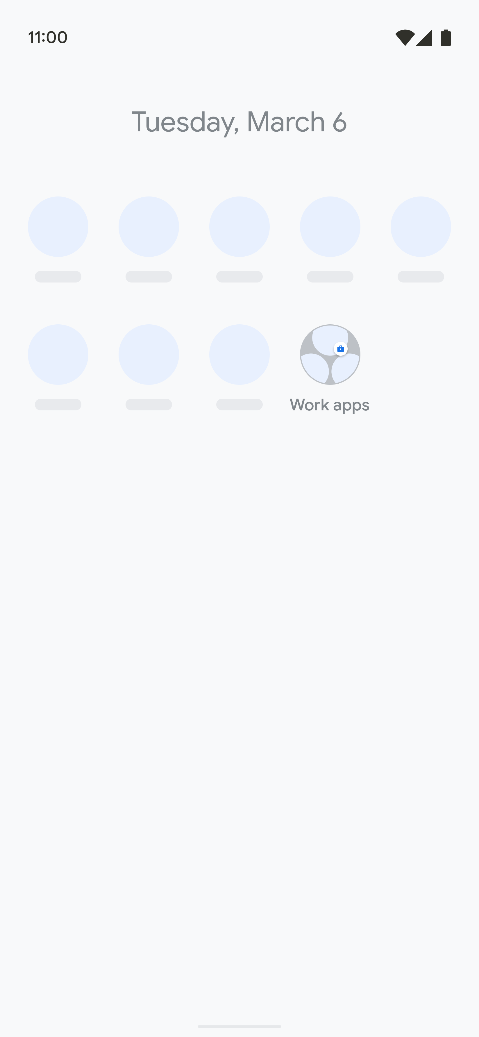 5. Başlatıcıyı veya uygulama çekmecesini açıp iş sekmesinin mevcut olduğunu ve iş profili altbilgisi içerdiğini doğrulayın. Alternatif cihaz üreticisi uygulamalarında iş sekmesi yerine iş klasörü olabilir.